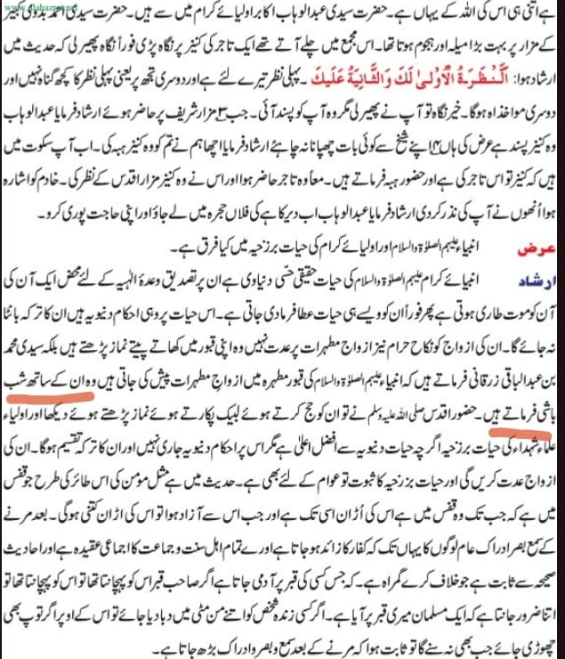 Urdu: “پیغمبر اعظم صلی اللہ علیہ و سلم کو قبر میں بھی زوجہ دی جائے گی۔”